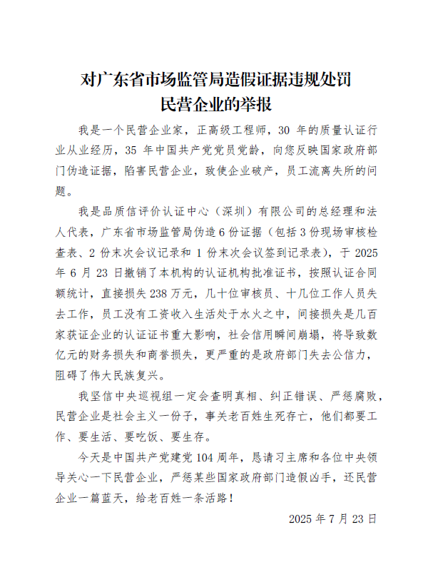 给中央巡视组的一封信